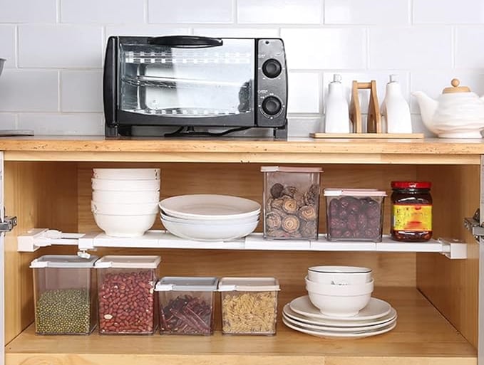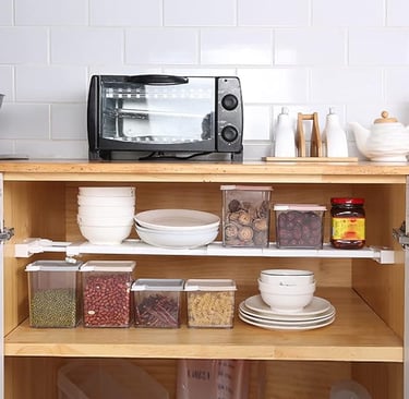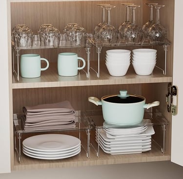 Best for: Dish storage, canned goods, spice jars Pro tip: Choose risers with non-slip feet to prevent sliding