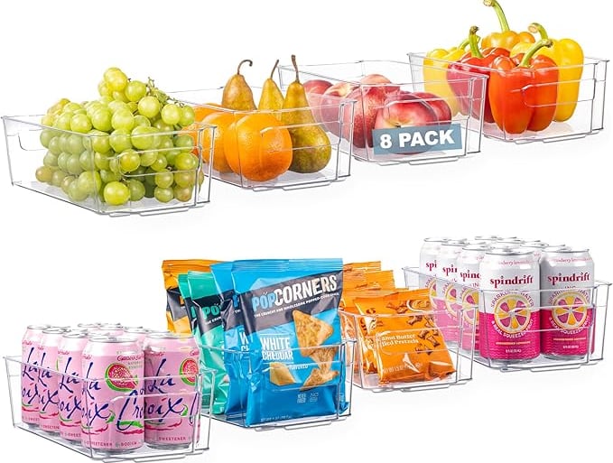 8 Pack Clear Plastic Fridge Organizer Bins – Stackable